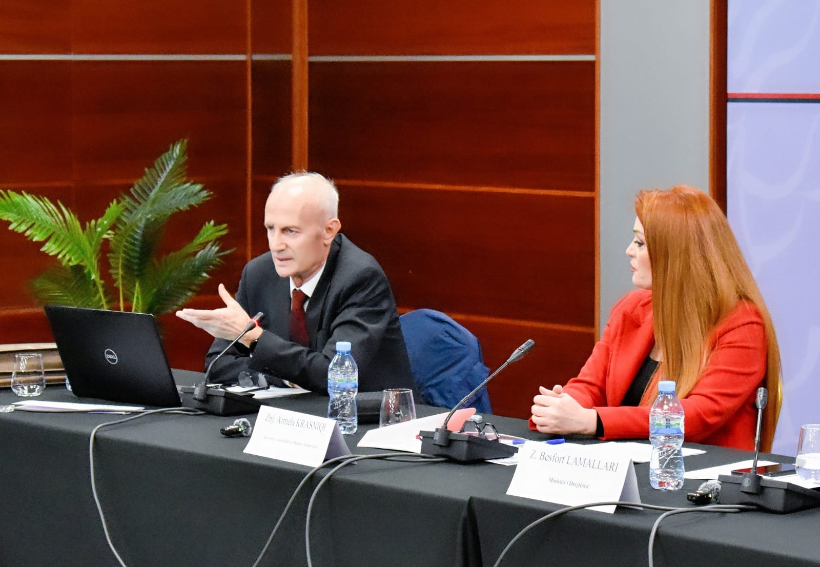 Me pjesëmarrjen e Ministrit të Drejtësisë, Besfort Lamallari, Shefes së Zyrës së Këshillit të Europës në Tiranë, Giulia Re, drejtuesin e grupit të punës për hartimin e Kodit të ri Penal, Arben Rakipi dhe anëtarë të tjerë të këtij grupi, Kryetares së AMA-a, Armela Krasniqi, Dekanit të Fakultetit të Historisë dhe Filologjisë, Mark Marku, gazetarë dhe përfaqësues të shoqatave të gazetarëve u diskutuan konkretisht propozimet e këtyre aktorëve mbi draftin e Kodit të ri Penal.