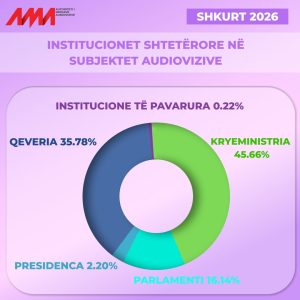 Të dhënat e monitorimit të përmbajtjeve për muajin shkurt, të përgatitura nga ekipet e analizës në Autoriteti i Mediave Audiovizive , tregojnë një dominim të qartë të disa aktorëve politikë dhe institucioneve në televizionet kombëtare.
