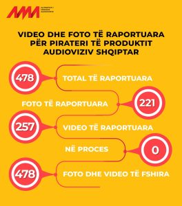 Në drejtim të piraterisë, gjatë kësaj periudhe janë raportuar 221 foto dhe 257 video, ndërsa 478 materiale foto/video janë hequr nga platforma.